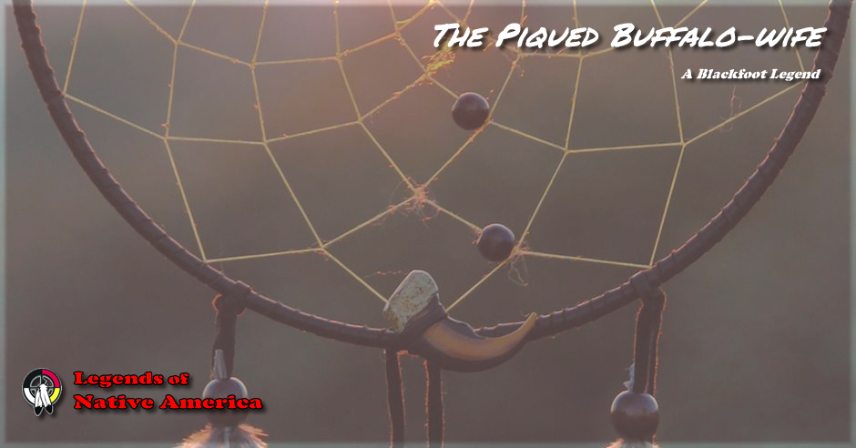 They lived together happily for many years. She was a remarkably good woman. One evening when the husband had invited some guests, the woman expressed a dislike to prepare food for them, he became very angry and, catching up a stick from the fire, struck at her. As he did so, the woman and her child vanished, and the people saw a buffalo-cow and calf running from the camp.