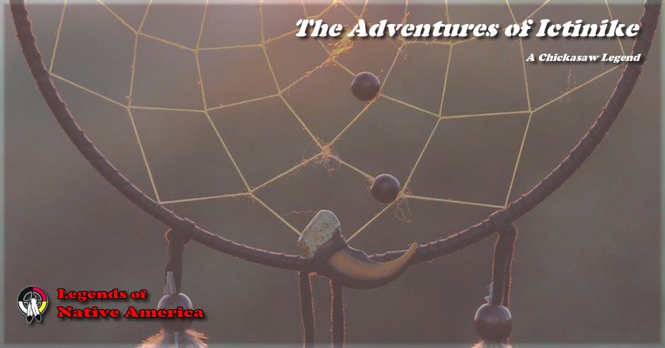 Many tales are told by the Iowa Indians regarding Ictinike, the son of the sun-god, who had offended his father, and was consequentially expelled from the celestial regions. He possesses a very bad reputation among the Indians for deceit and trickery. They say that he taught them all the evil things they know, and seem to regard him as the Father of Lies. The Omahas state that he gave them their war-customs, and for one reason or another they appear to look upon him as a species of war-god. A series of myths recound his adventures with several inhabitants of the wild. The first of these is as follows.